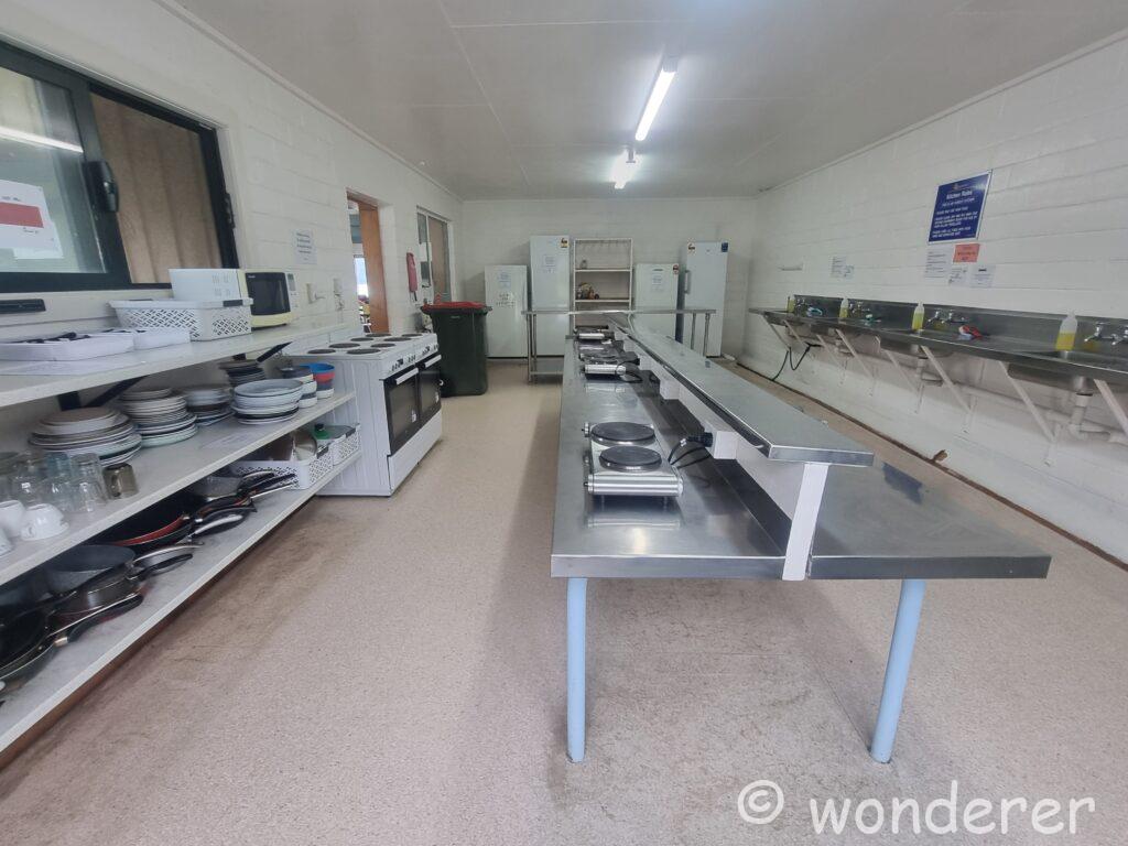 キャビンがあるので、キッチンに鍋、食器などが揃っている他 BBQ施設もある。Wi-Fi無料、ラウンジで充電可能。シャワーは無料、洗濯4ドル