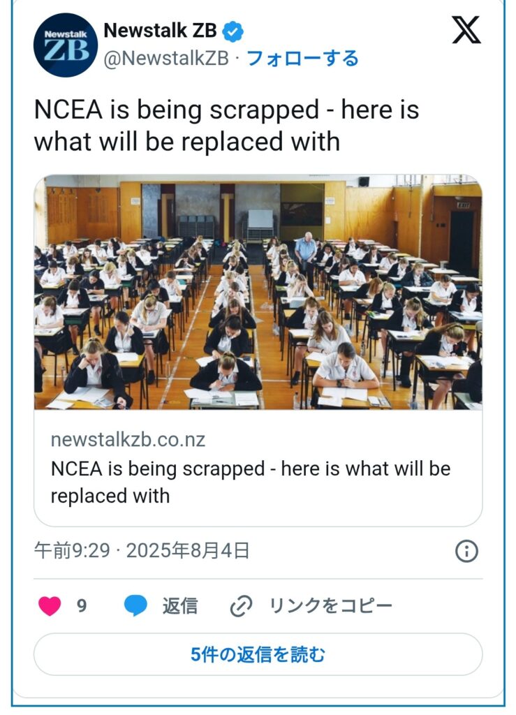 今月初め、ニュージーランド政府は現在採用されているNCEAと呼ばれる中高等教育資格制度を廃止し、替わりに新しいシステムを導入することを発表しました。